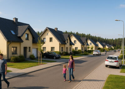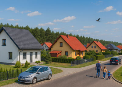 To propozycja dla osób, które nie chcą wybierać między wygodą a naturą. Kameralne osiedla, sąsiedztwo lasów i terenów rekreacyjnych, cisza po pracy i przestrzeń, w której naprawdę można odetchnąć. Każda z lokalizacji została wybrana z myślą o komforcie przyszłych mieszkańców – blisko szkół, sklepów i głównych dróg dojazdowych.